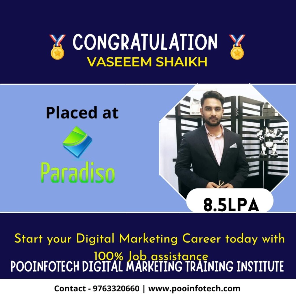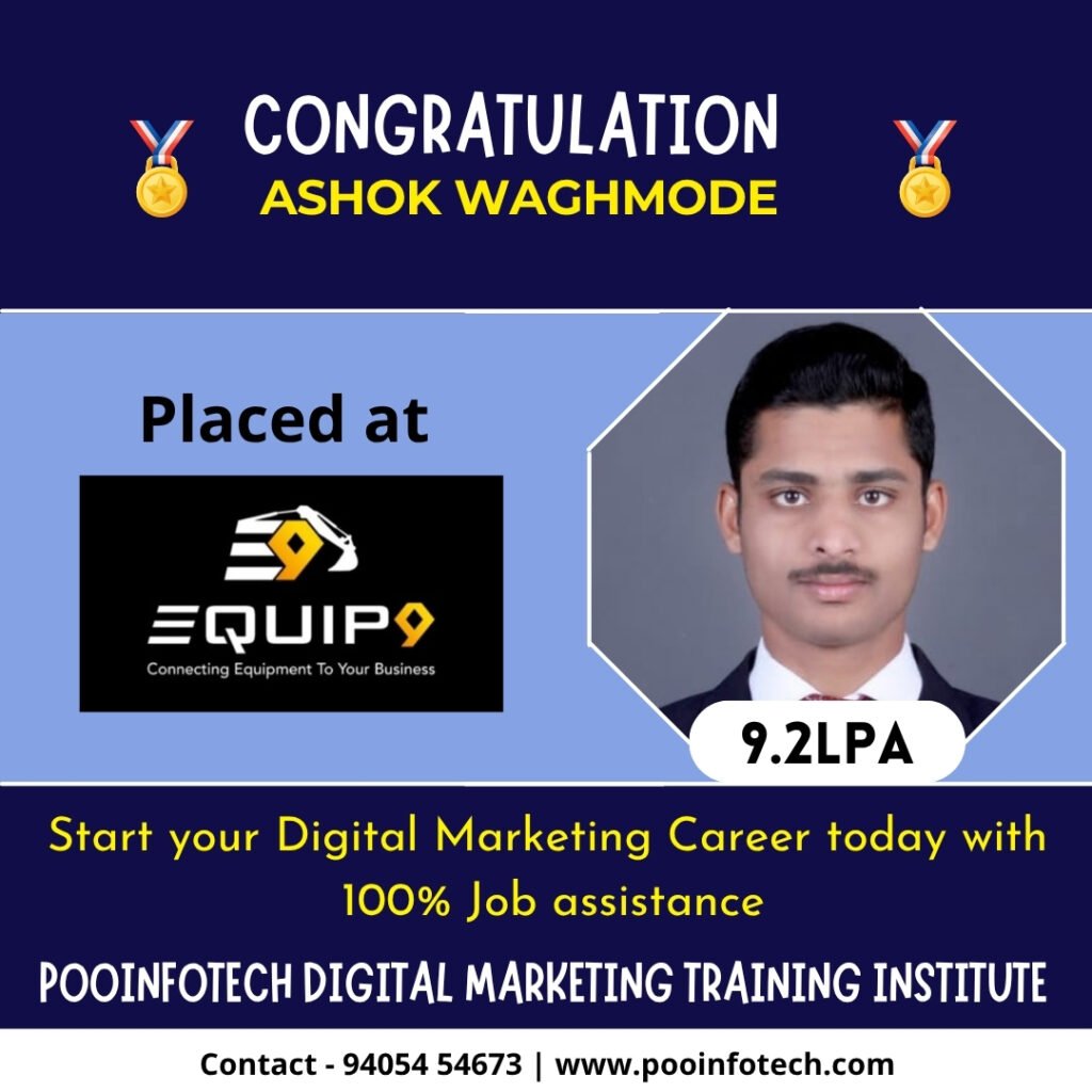 Start your journey in the world of digital marketing with Puneâs most trusted training institute. Master essential skills like SEO, Google Ads, Meta Ads, Social Media Marketing, and Analytics through practical, real-time training. With expert guidance and 100% placement assistance, we help you build a strong career in one of the fastest-growing industries.